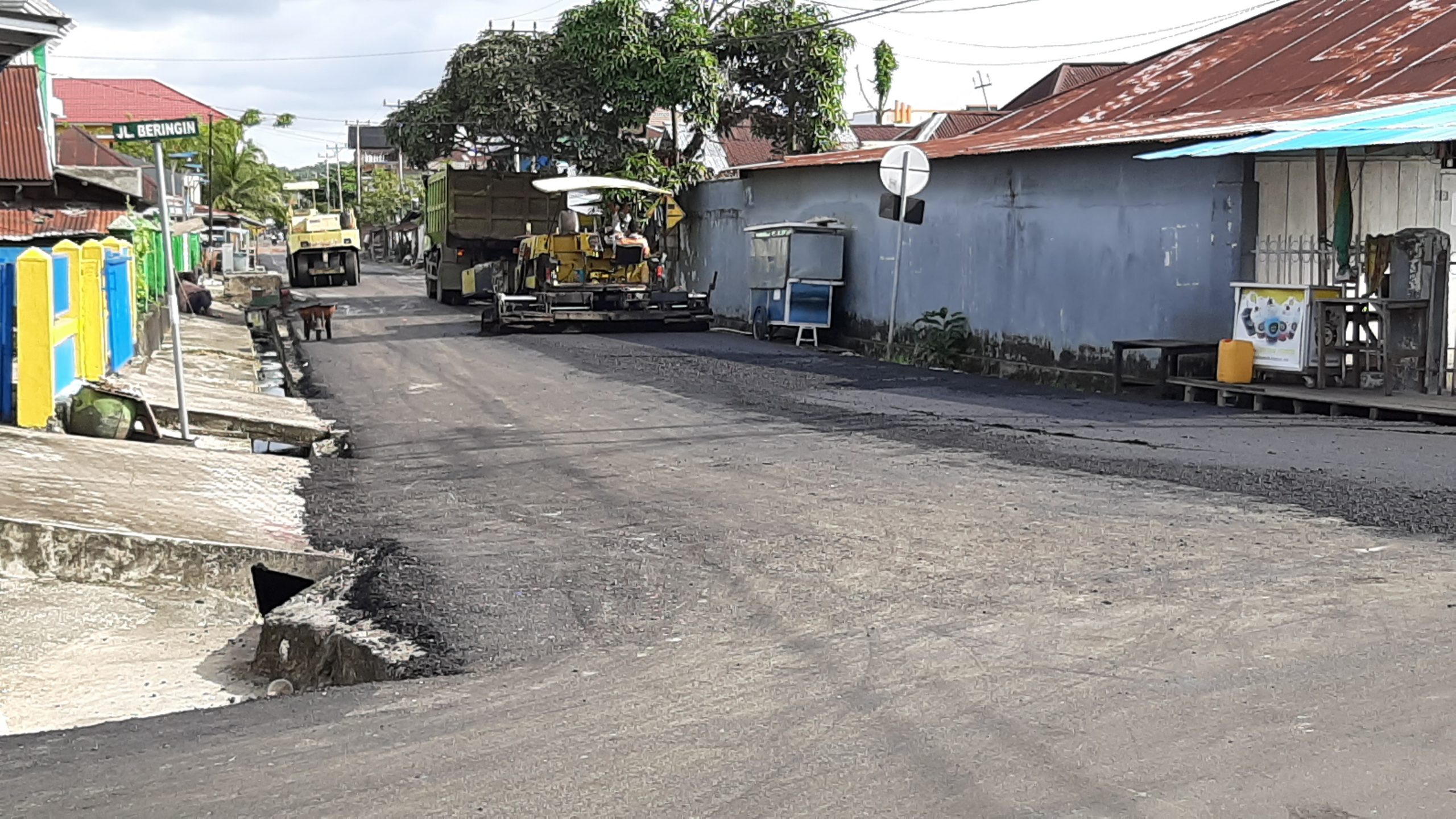 Foto pengaspalan pertigaan pasar tua