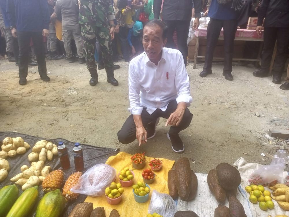 SALAKAN, KABAR BENGGAWI – Saat kunjungan kerja di Kabupaten Banggai Kepulauan, Selasa (26/3/2024). Presiden Joko Widodo membeli sejumlah hasil bumi dari para pedagang.