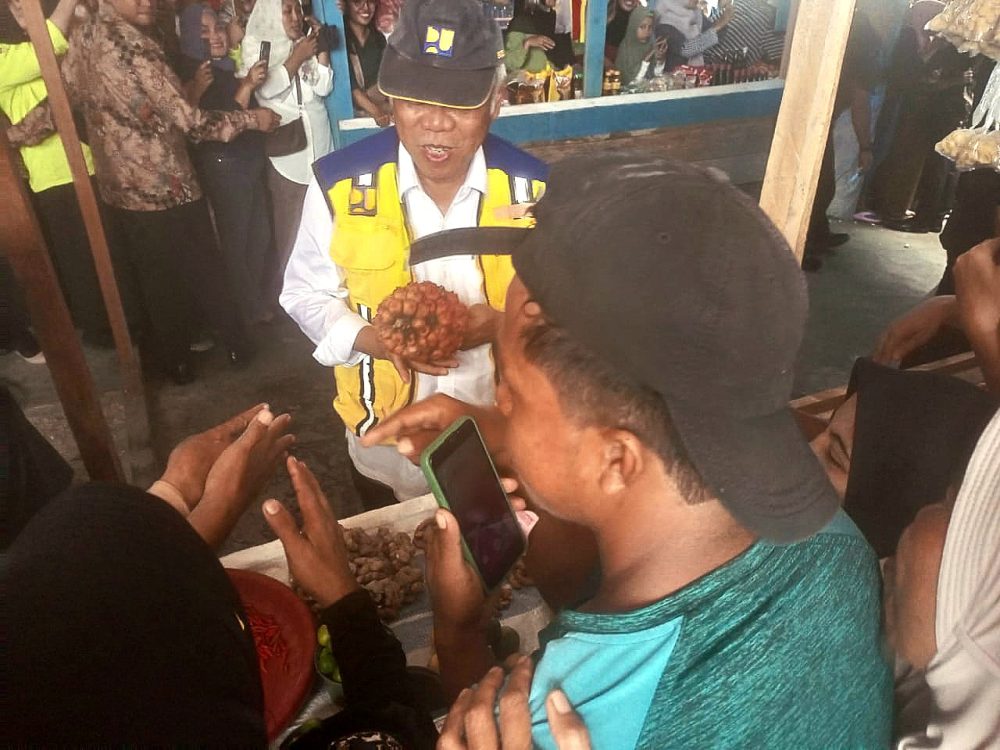 Tak mau ketinggalan Menteri Pekerjaan Umum dan Perumahan Rakyat (PUPR) Basuki Hadimuljono turut membeli buah asam tikala (kecombrang) atau patikala.