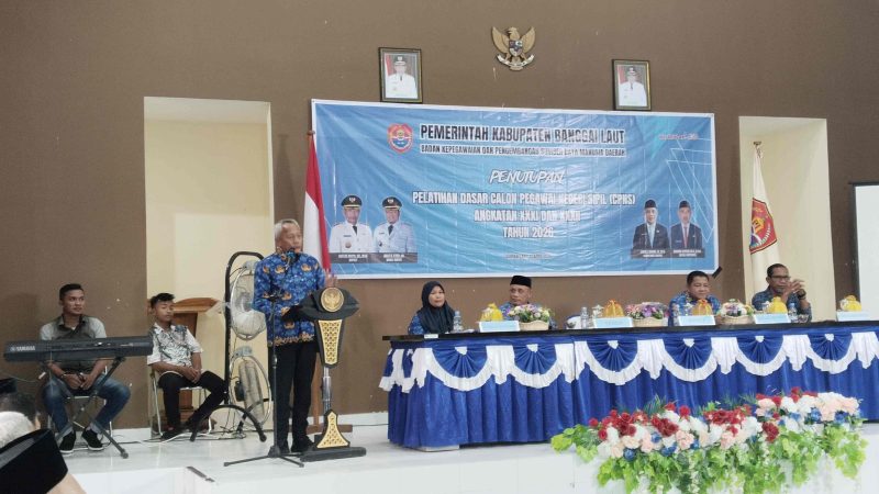 BANGGAI,KABAR BENGGAWI– Bupati Banggai Laut, Sofyan Kaepa, secara resmi menutup kegiatan Pelatihan Dasar (Latsar) Calon Pegawai Negeri Sipil (CPNS) Angkatan XXXI dan XXXII Tahun 2026 di Aula BKPSDM, Jumat (17/04/2026).